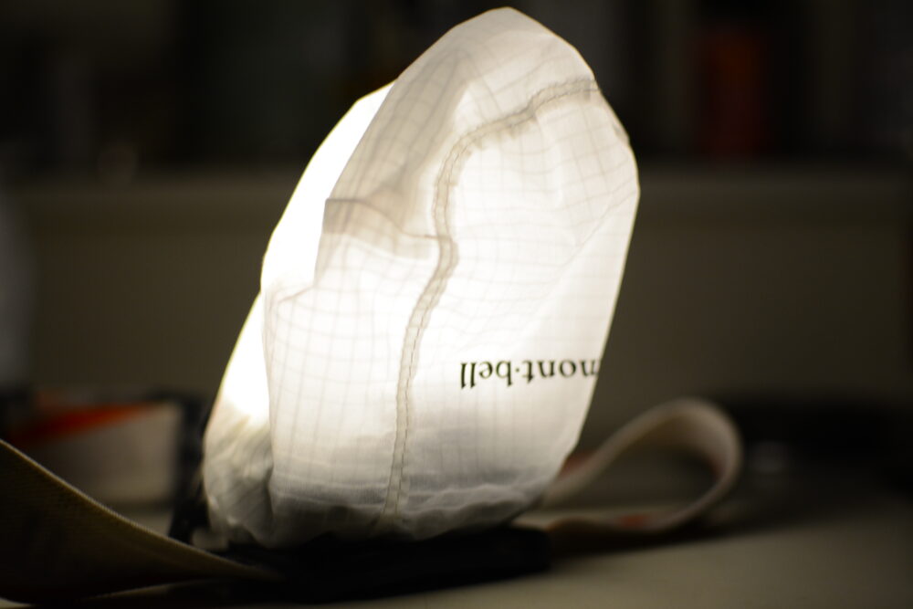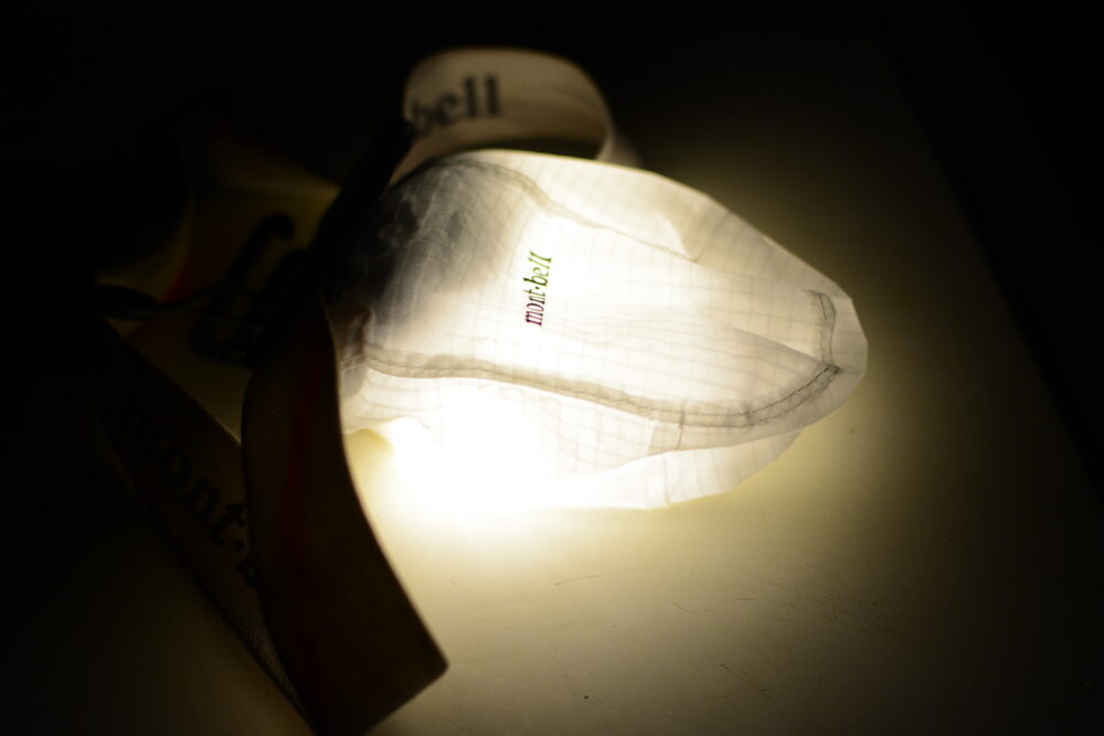 わたしが普段使用しているモンベルのヘッドライトに実際にクラッシャブルランタンシェードを被せます
